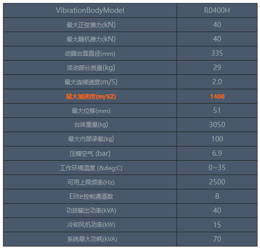 高加速度振動(dòng)臺(tái)采用輕質(zhì)高強(qiáng)度動(dòng)圈,空載加速度比標(biāo)準(zhǔn)設(shè)備提高了40%。